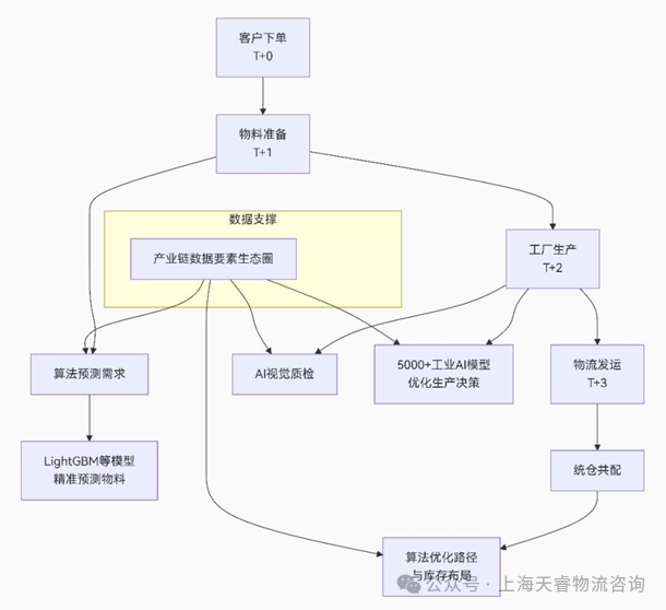 N集團的實踐表明,現代制造業(yè)的競爭,核心是供應鏈協(xié)同效率和數據算法應用能力的競爭。其T+3模式不僅僅是四個環(huán)節(jié)的簡單拼接,更是在算法、數據、流程和組織深度融合下形成的、難以模仿的系統(tǒng)性競爭力。圖為該集團應用算法賦能T+3制造供應鏈的邏輯圖。